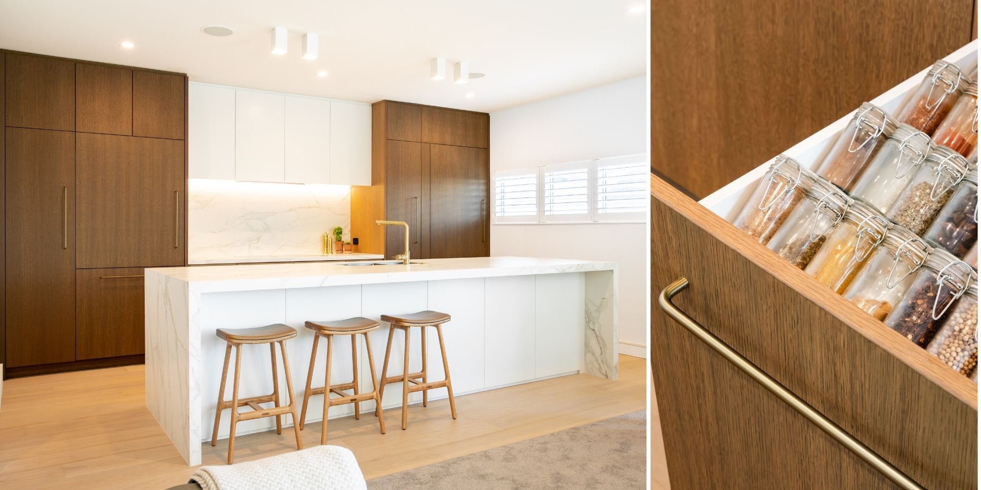 For this Takapuna kitchen renovation, designed by Michelle Gillbanks, the priority was to create a stunning, well organised kitchen and scullery with plenty of seating for entertaining family and guests.